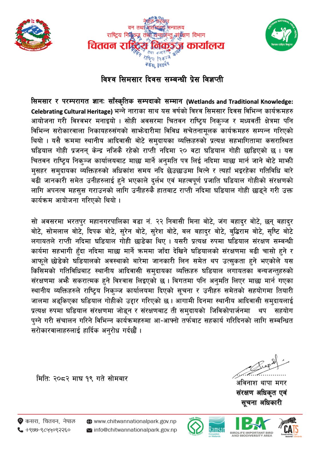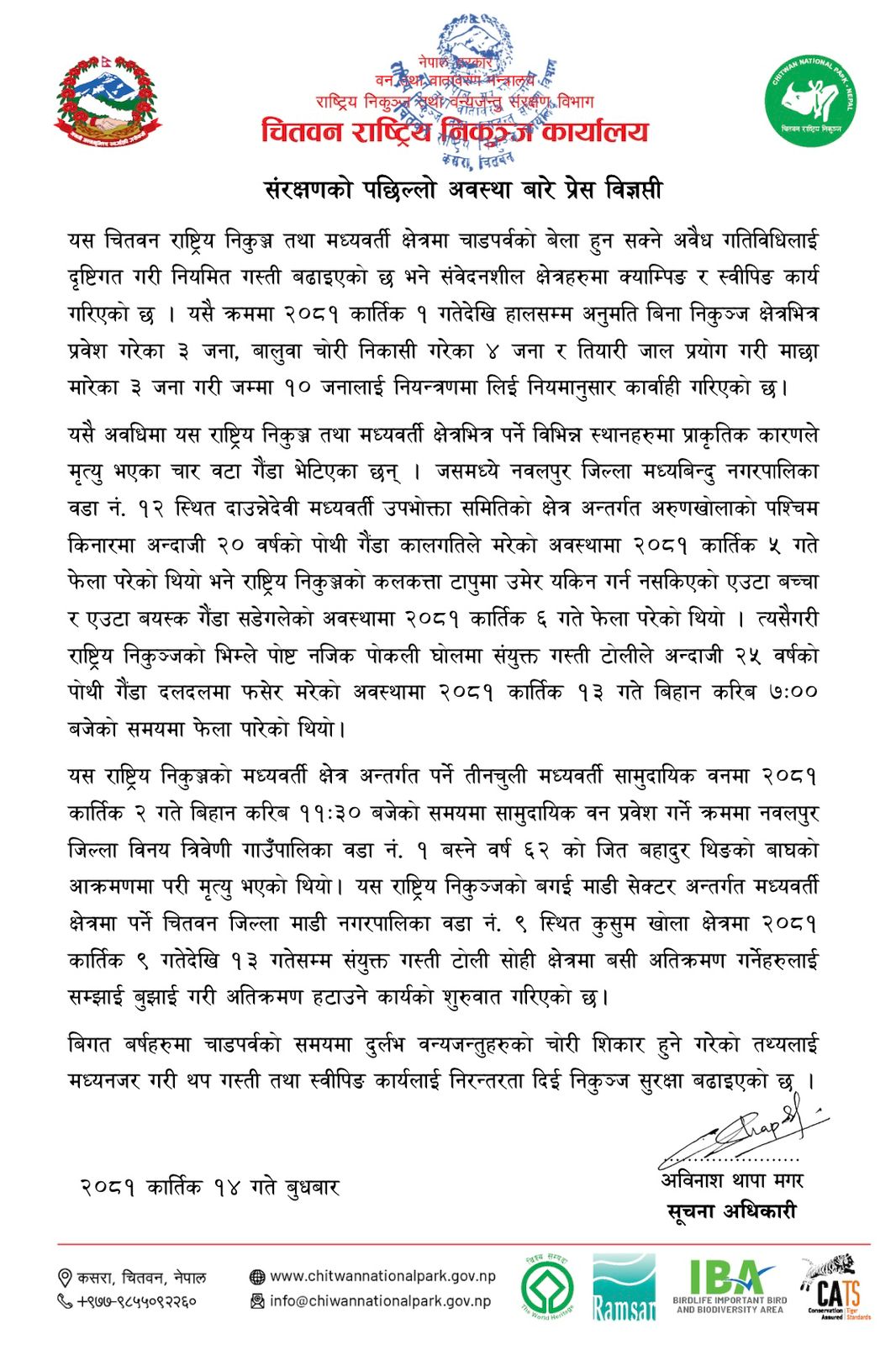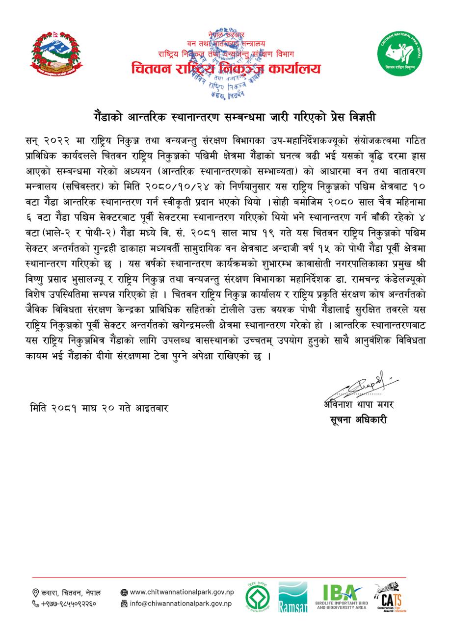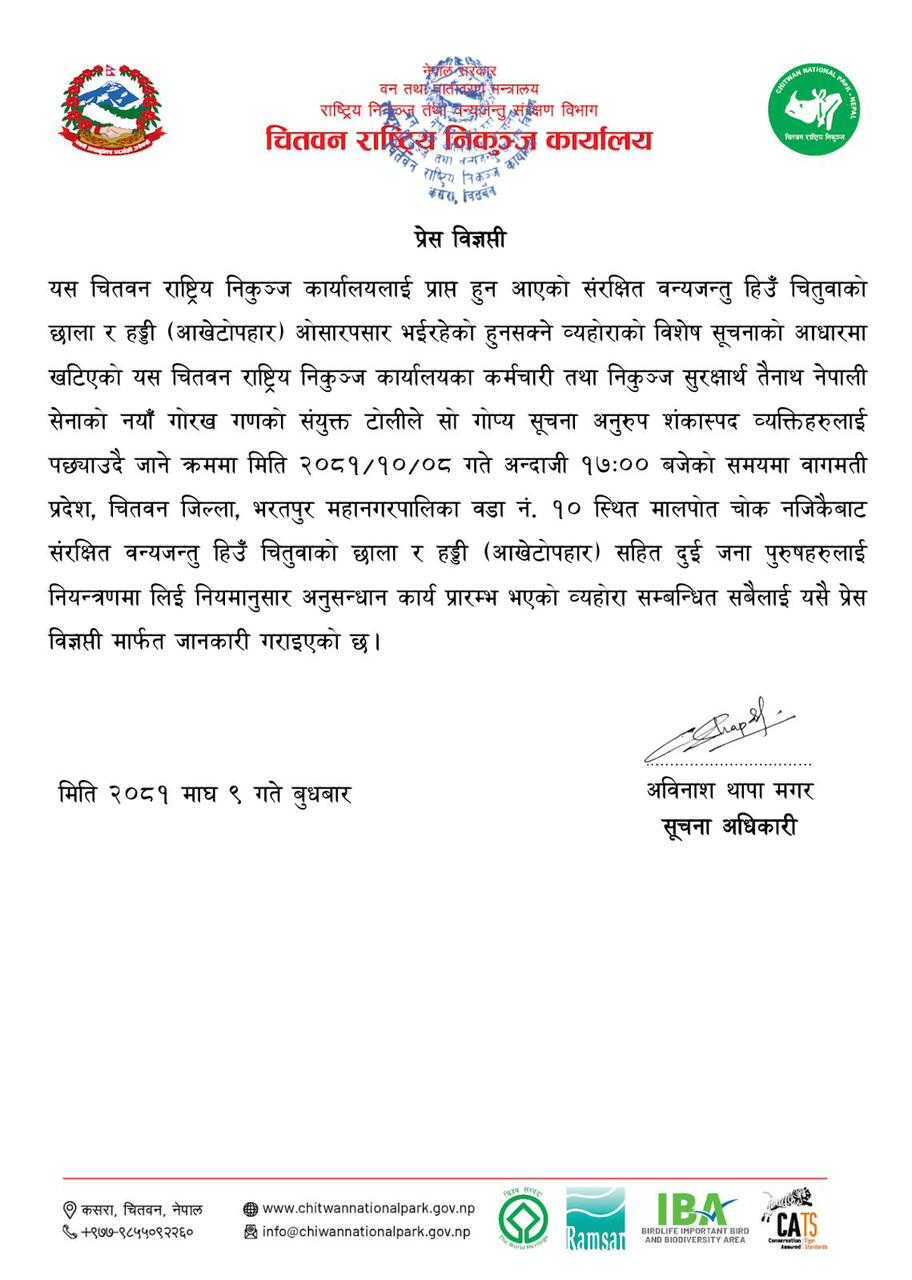 संरक्षणको पछिल्लो अवस्था बारे प्रेस बिज्ञप्ति